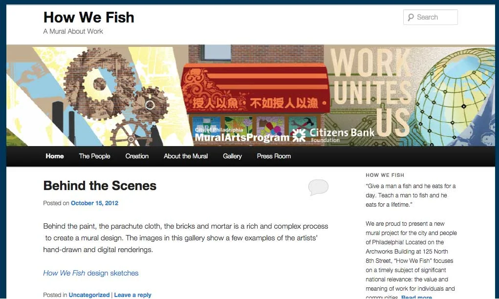 This site, designed by my teammates at Social Impact Studios, chronicles the interactions, events, and processes behind our How We Fish mural, and its design.